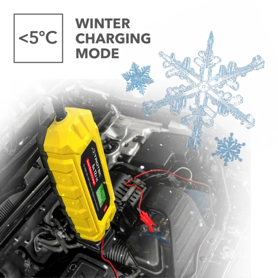 - Naudojant 6 amperų įkrovimo srovę ir apšviestą LCD ekraną, užtikrinamas greitas ir saugus akumuliatorių įkrovimas.