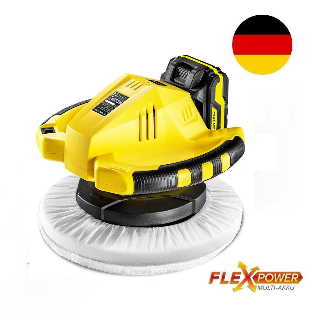 Ši poliravimo mašina turi galingą 20 V 2 Ah ličio jonų akumuliatorių, kuris yra suderinamas su daugeliu kitų "Flexpower" serijos elektrinių įrankių. Tai suteikia neribotą judėjimo laisvę ir ilgalaikes energijos atsargas būtiniems priežiūros darbams.