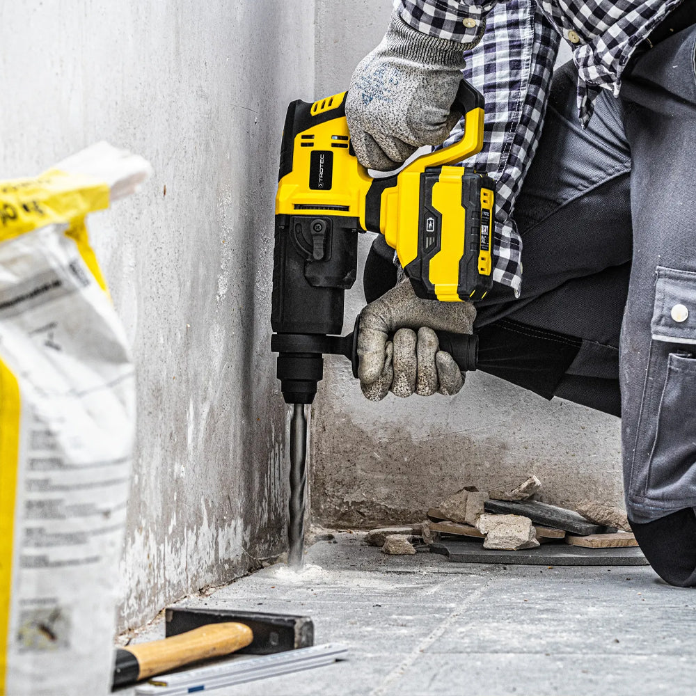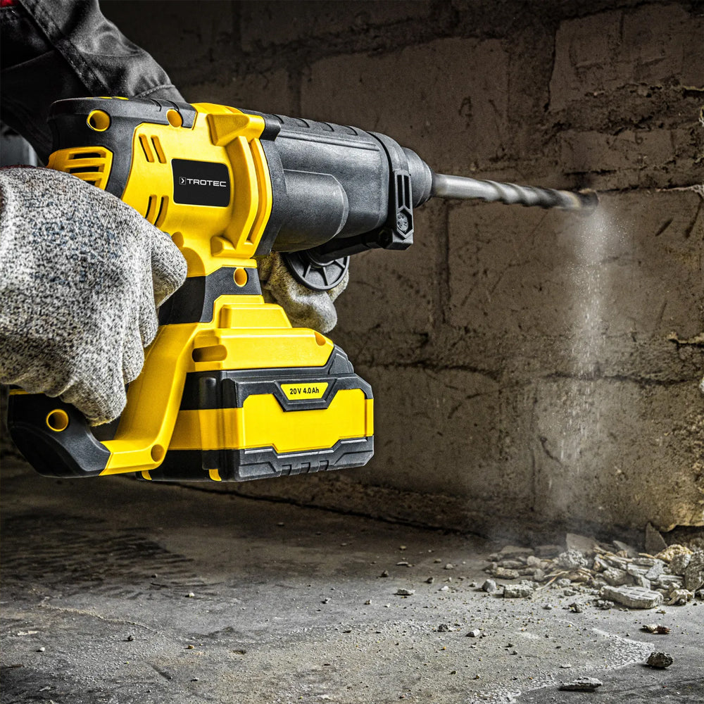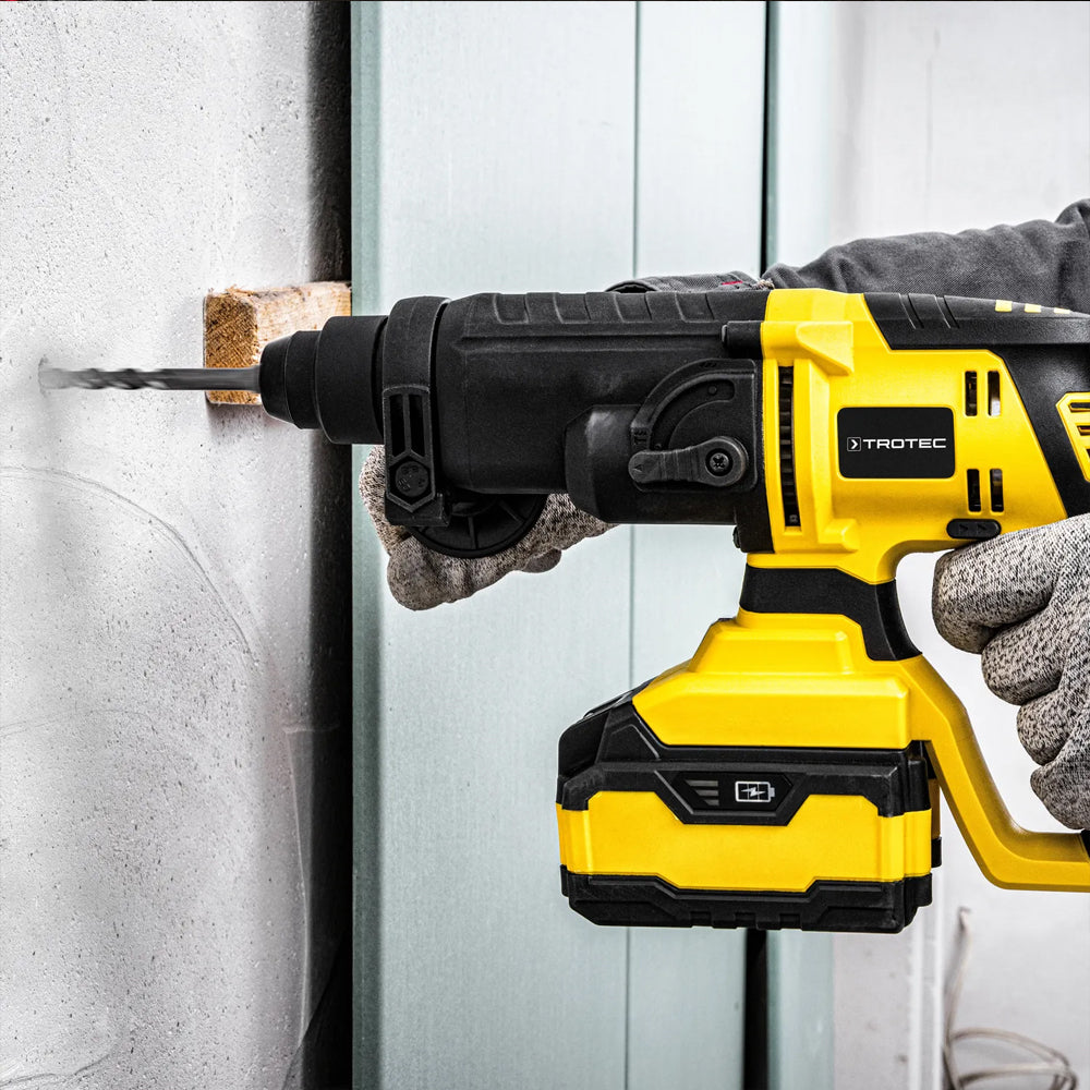 Vos 3 kg sveriantis akumuliatorinis perforatorius Trotec PRDS 20-20V su 20 V 4 Ah ličio jonų akumuliatoriumi iš "Flexpower" serijos suteikia gręžimo laisvę bet kokiomis sąlygomis. Nesvarbu, ar reikia skverbtis į kietą uolieną, mūrą, betoną ar plytas, ar gręžti skyles medienoje, plastike, keramikoje ir metale: visada galite pasikliauti ištverminga šio patogaus akumuliatorinio perforatoriaus galia. Dėl didelio smūgių dažnio (5 000 smūgių per minutę) ir smūgio jėgos (2,0 džaulio) bendra smūgio energija be vargo įstumia 3 komplekte esančius SDS grąžtus į apdirbamą medžiagą. Su šiuo įrankiu galima dirbti net virš galvos, nepavargstant ir mažai vibruojant.