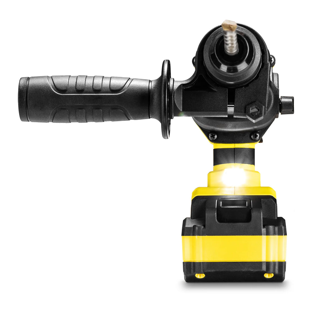 Papildoma gumuota rankena galima pasukti 360° kampu, kad stabiliai laikytųsi bet kurioje padėtyje. Taip užtikrinama, kad akumuliatorinis perforatorius Trotec PRDS 20-20V visada gerai ir tvirtai laikytųsi rankoje pačiose įvairiausiose darbo vietose.