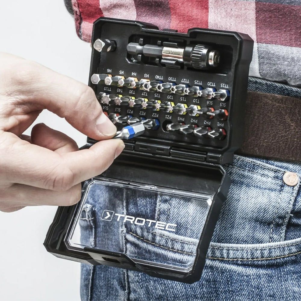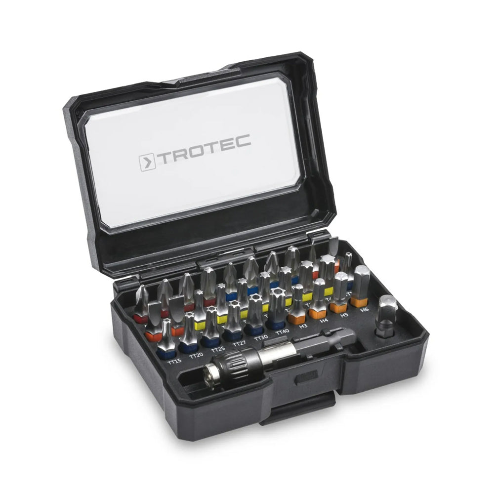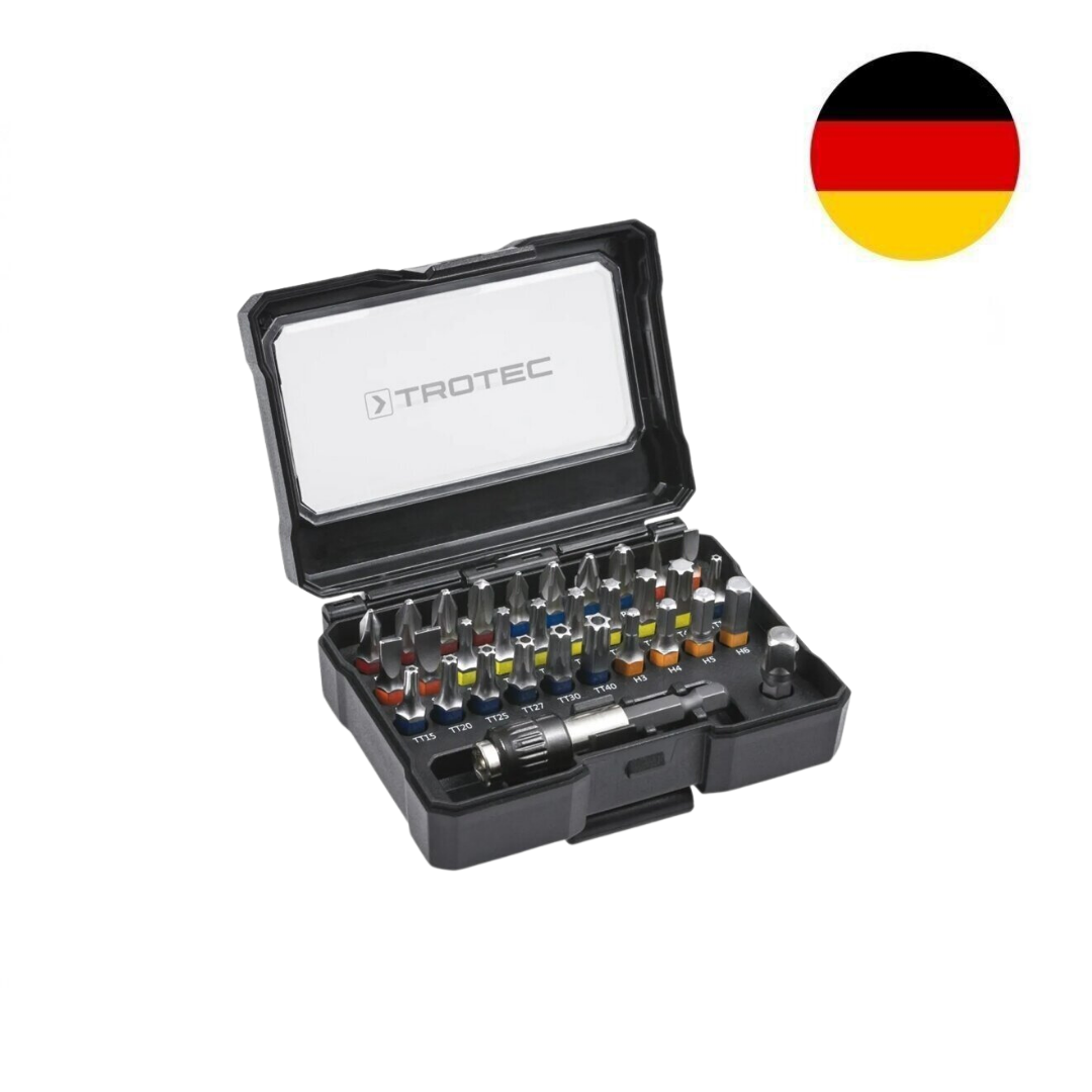 - 32 dalių antgalių rinkinys suktukui Trotec PSCS yra puikus pasirinkimas, pasirengiant bet kokiam darbui. Šis rinkinys pasižymi patvariais ir kokybiškais antgaliais, tinkančiais įvairiems darbams bei visų gamintojų akumuliatoriniams atsuktuvams.