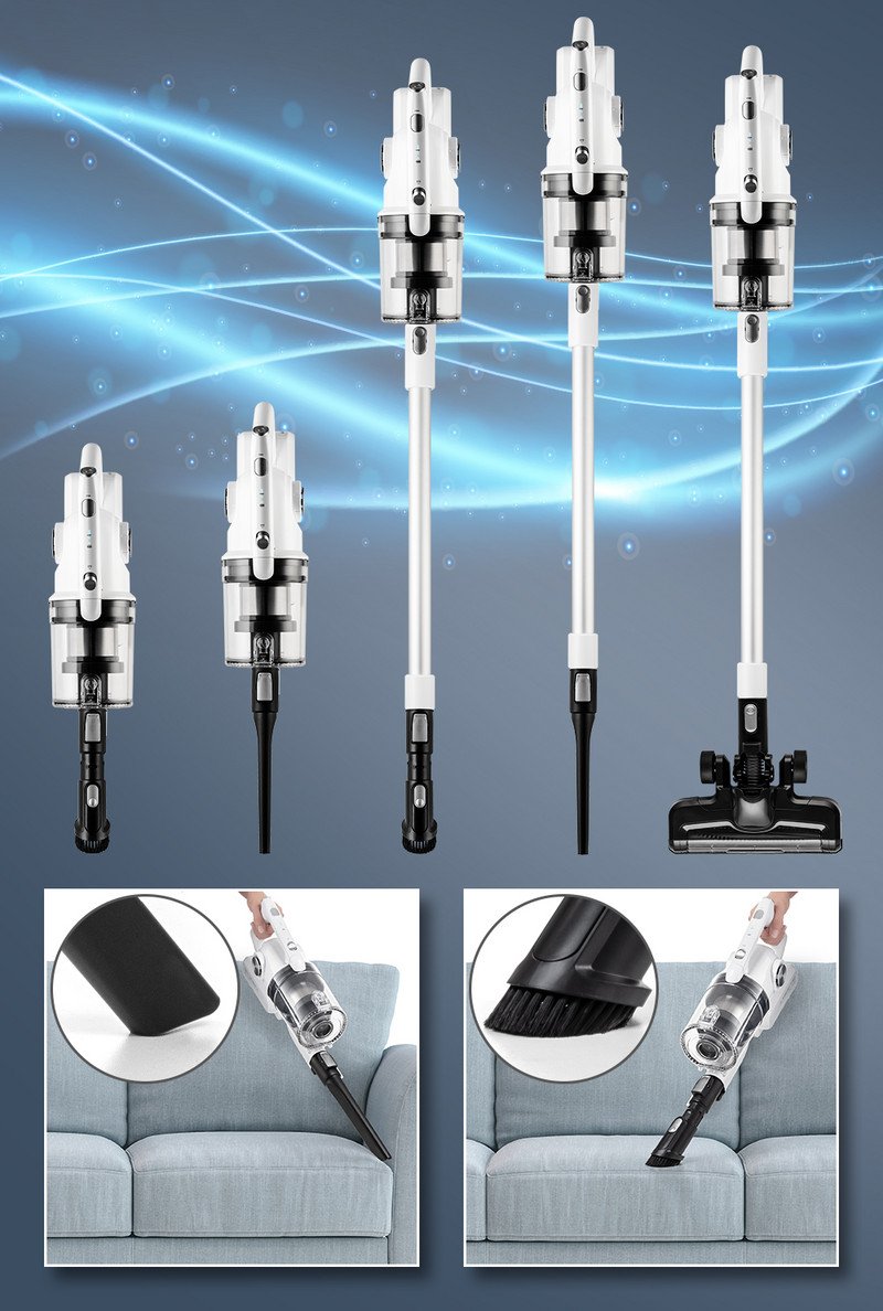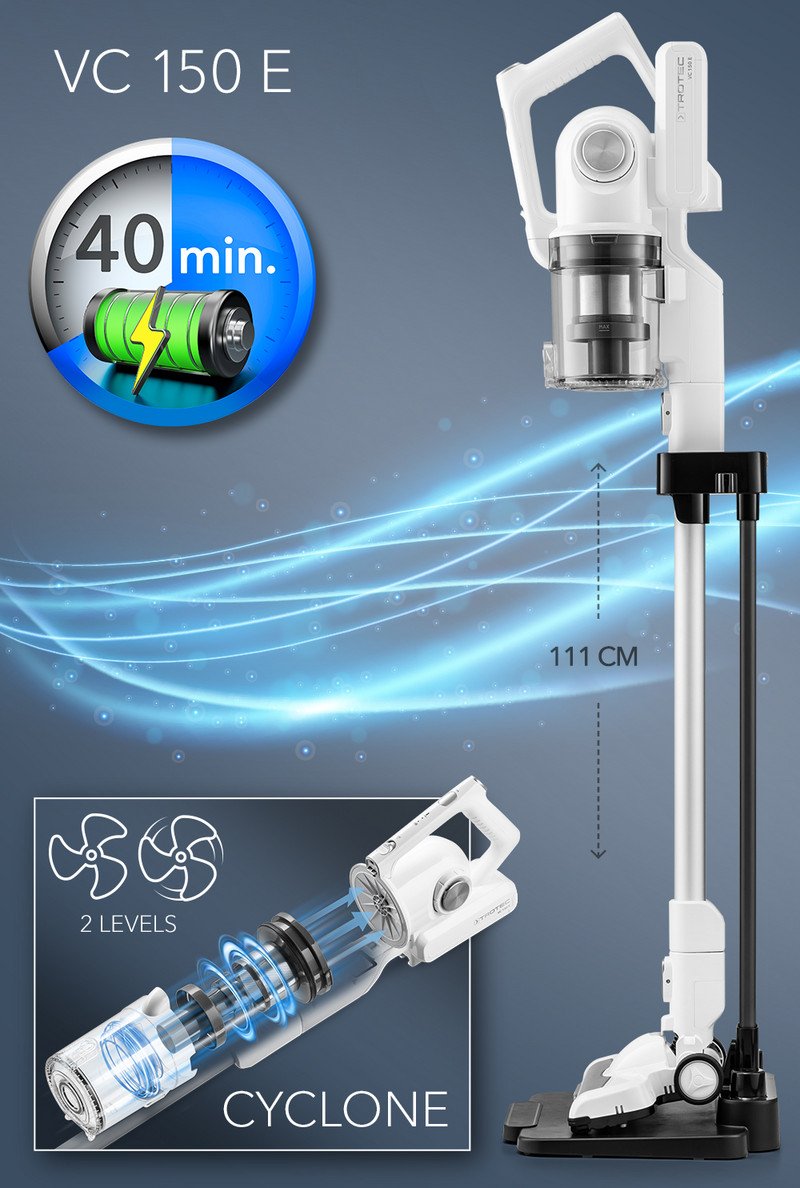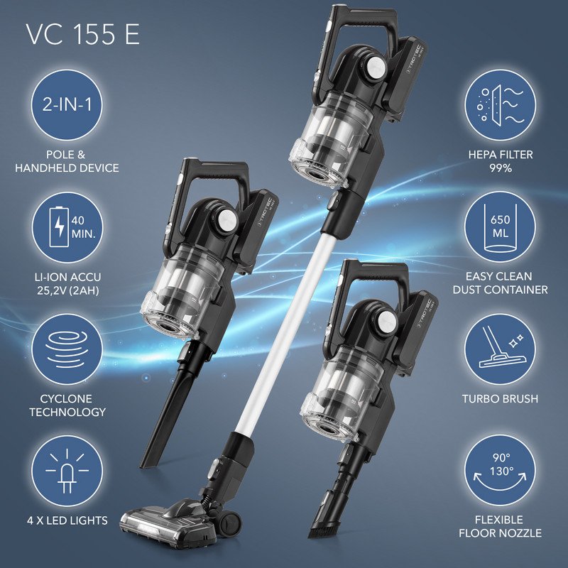 - Belaidis dulkių siurblys-šluota „2-in-1“: belaidis vertikalus dulkių siurblys ir kompaktiškas rankinis dulkių siurblys su galinga ciklono technologija, HEPA filtru ir LED apšvietimu.
