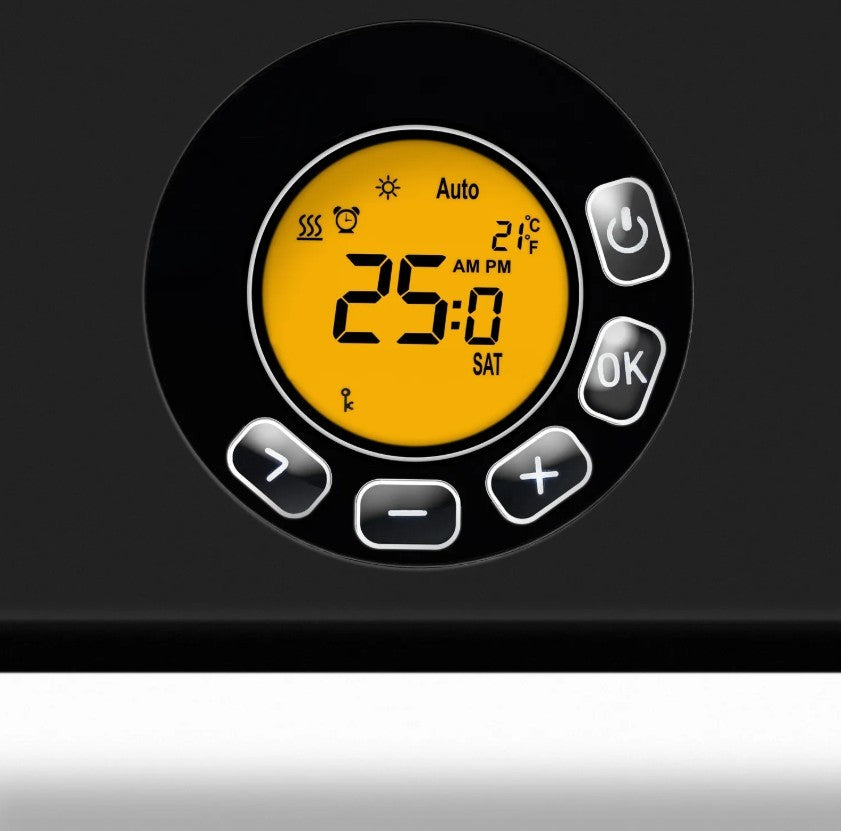 Išmanios energiją taupančios funkcijos leidžia konvektoriui automatiškai reguliuoti šilumos intensyvumą pagal nustatytą temperatūrą. Langų atidarymo detekcija padeda išvengti bereikalingų energijos nuostolių, o savaitinis laikmatis suteikia galimybę nustatyti individualius šildymo grafikus kiekvienai savaitės dienai. Įrenginys yra saugus naudoti – jame integruota perkaitimo apsauga, vaikų saugos užraktas bei užšalimo prevencijos funkcija. Dėl apsaugos nuo drėgmės (IP24) konvektorių galima naudoti ir voniose ar kitose drėgnose patalpose.