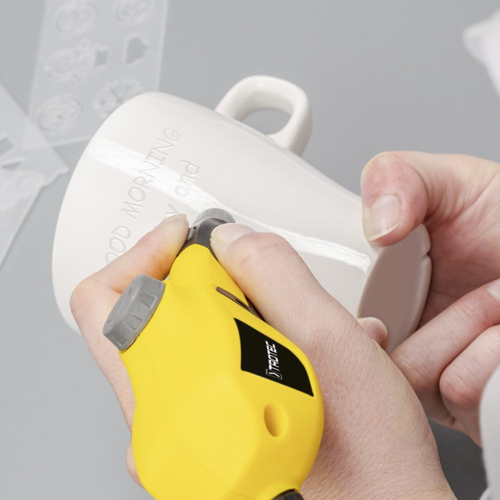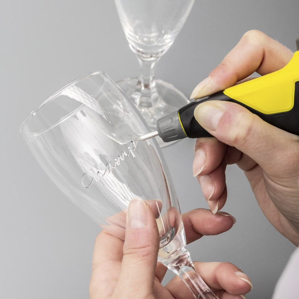 - Keičiamas graviravimo antgalis pagamintas iš patvaraus volframo plieno, kuris užtikrina ilgaamžiškumą ir aukštą kokybę.