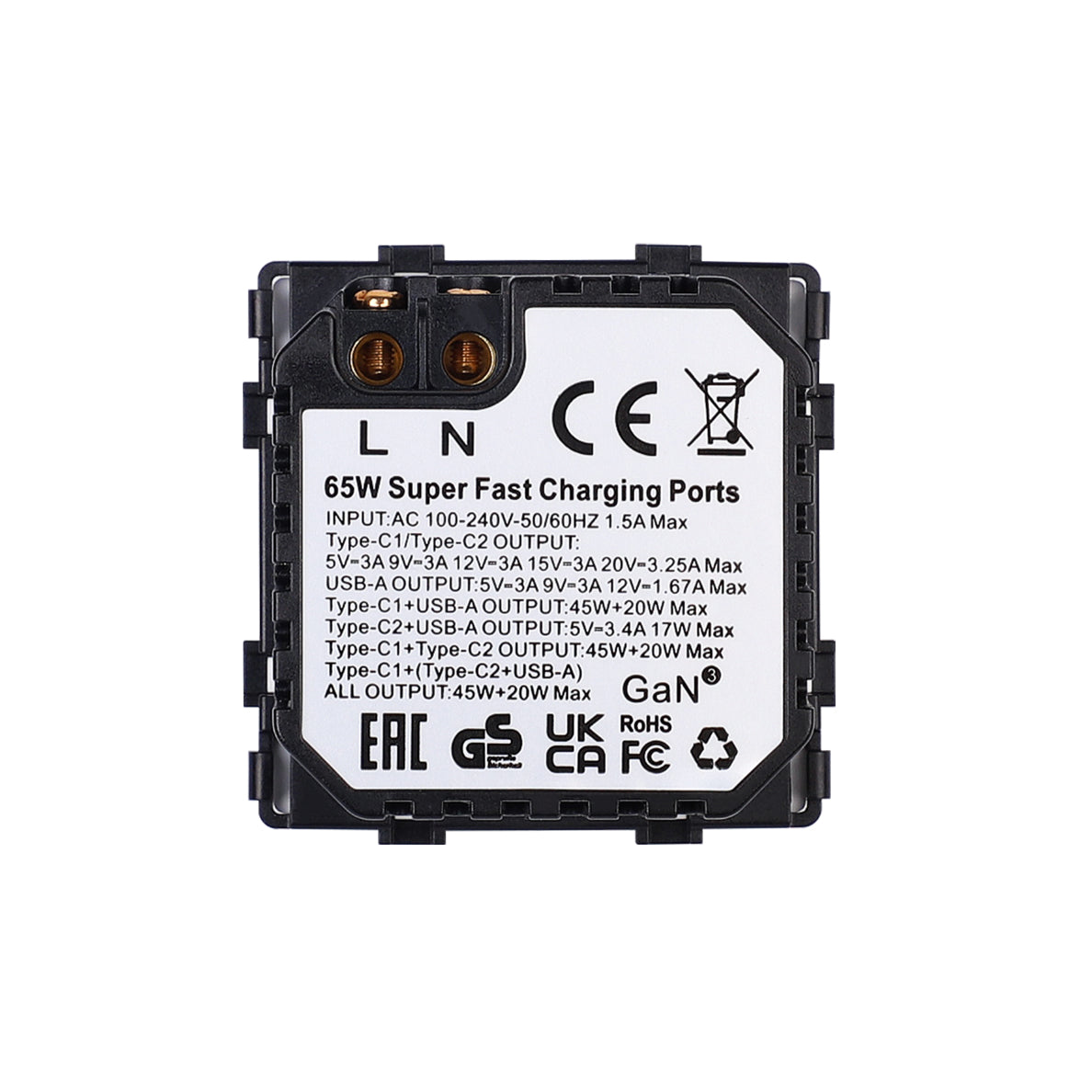 Greito krovimo rozetė su USB ir C tipo jungtimis 65W balta