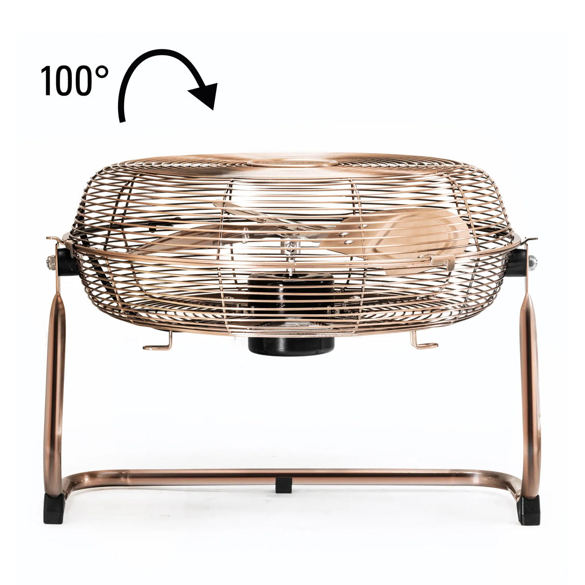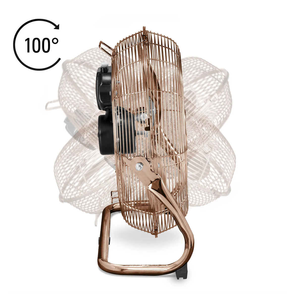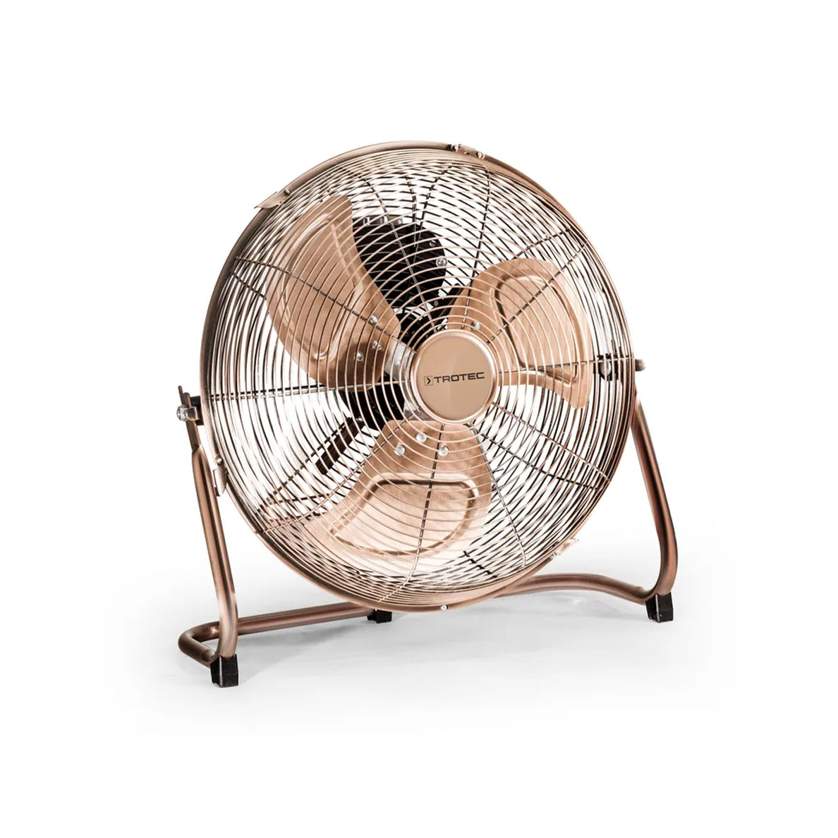 Grindinis ventiliatorius Trotec TVM 13 suteikia galimybę mėgautis gaivia vėsa tiek namuose, tiek biure ar bet kurioje kitoje vietoje, kur reikia efektyvaus vėsinimo. Šis ventiliatorius pasižymi stilingu dizainu ir yra pagamintas tik iš metalo, daugiausia padengto variu, įskaitant ir variklio varinę ritę. Tai ne tik suteikia blizgų išvaizdą, bet ir užtikrina ilgaamžiškumą dėl tvirtos konstrukcijos. Veikdamas vos 59 dB garso lygiu 1 metro atstumu, 44 W galios ventiliatorius greitai ir tyliai atvėsins patalpą. Jo reguliuojamas 100° pasvirimo kampas leidžia nukreipti oro srautą ten, kur labiausiai reikia. Ventiliatorius turi tris greičio lygius, o stipriausiu pajėgumu pasiekia 3,38 m³/h oro srauto greitį. Greičio lygius galima reguliuoti įrenginio nugarinėje pusėje. Naudojant papildomus tvirtinimus, ventiliatorių galima montuoti prie sienų arba lubų, todėl jis puikiai tinka restoranams, kavinėms ir kitoms viešosioms erdvėms.
