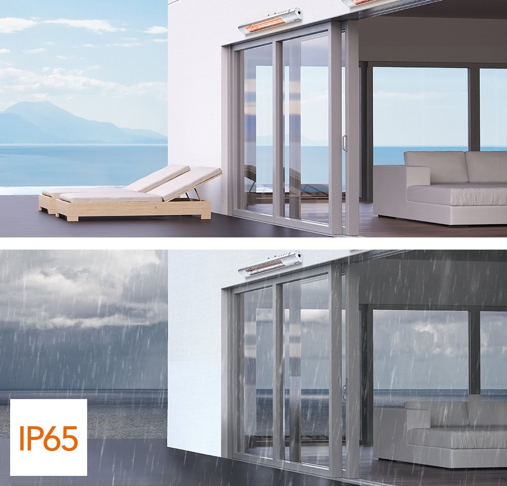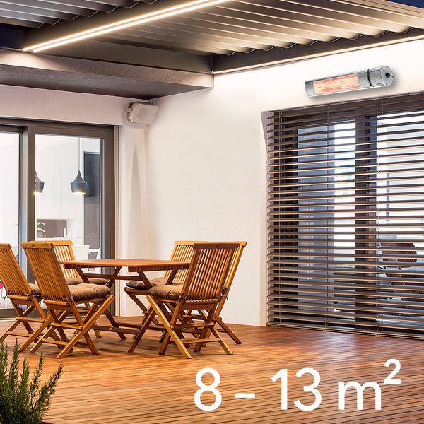 - Šildytuvas yra tinkamas montuoti ant sienos, todėl puikiai tinka naudoti balkonuose, terasose, pavėsinėse ir kitose atvirose lauko erdvėse.
