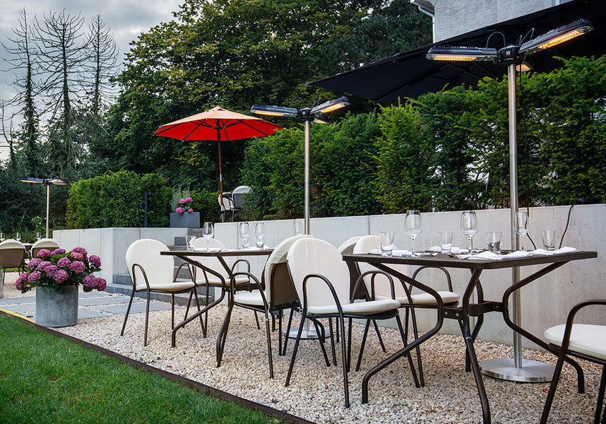 - Skirtingai nuo kitų lauko šildytuvų, šis halogeninis infraraudonųjų spindulių šildytuvas pirmiausia šildo odą ir kitus paviršius, o ne aplinkos orą. Dėl šio veikimo principo jis šildo intensyviau ir efektyviau nei kitos šildymo technologijos, nesukeldamas nemalonių kvapų ar triukšmo.
