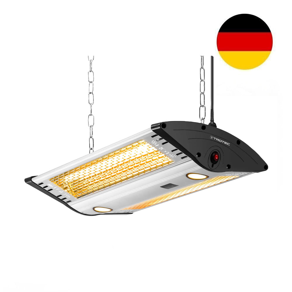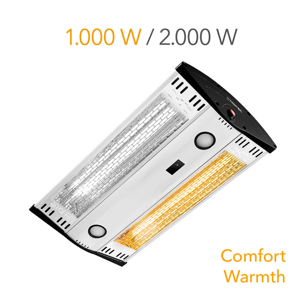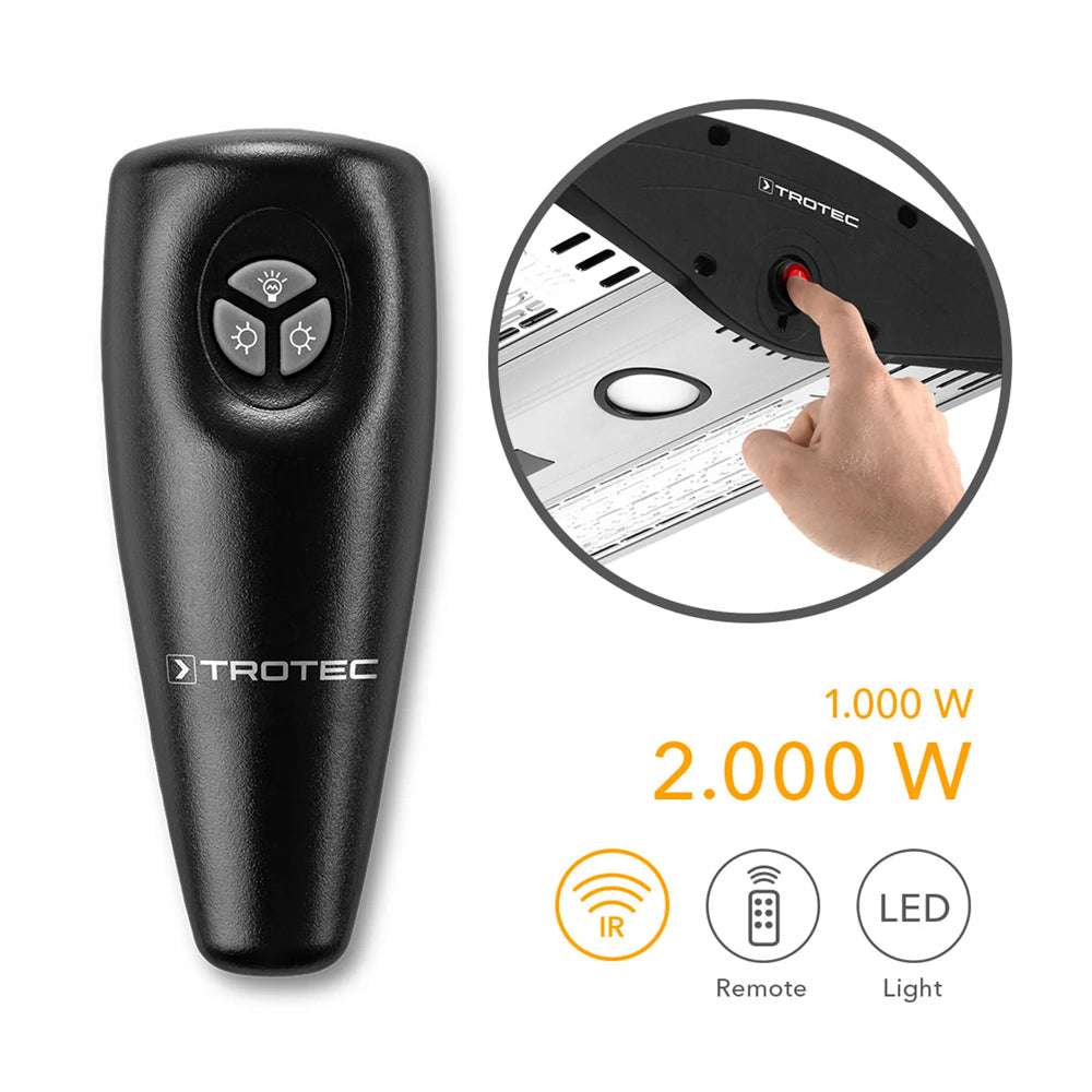 - Aukštos kokybės halogeninis infraraudonųjų spindulių lubinis lauko šildytuvas Trotec IR 2000 C yra puikus pasirinkimas tiems, kurie nori prailginti vakarus balkone, terasoje ar pavėsinėje. Šis šildytuvas turi du šildymo lygius (1 000 W ir 2 000 W) ir yra valdomas nuotoliniu pulteliu.