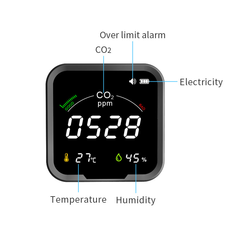 - CO2 matuoklis ir oro kokybės indikatorius.