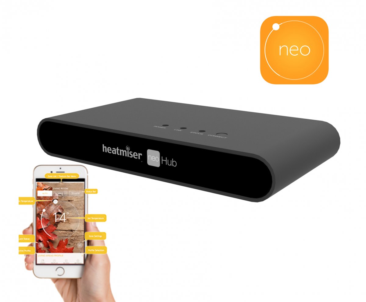 - „Heatmiser neoHub“ yra išmanioji stotelė, skirta „Neo“ sistemos prietaisams nuotoliniu būdu valdyti naudojant „iOS“, „Android“ ir „Windows 10“ įrenginius.