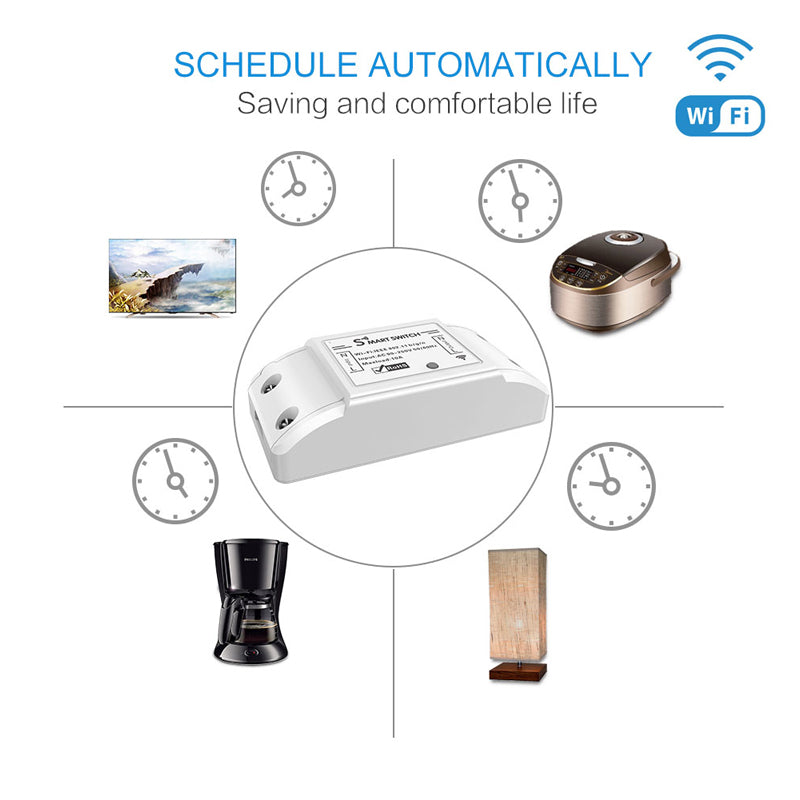 - Išmanusis jungiklis relė FS-WB01W su Wi-Fi ir Tuya technologija leidžia valdyti elektros prietaisus nuotoliniu būdu per Tuya, „Amazon Alexa“ ir „Google Home“ platformas.