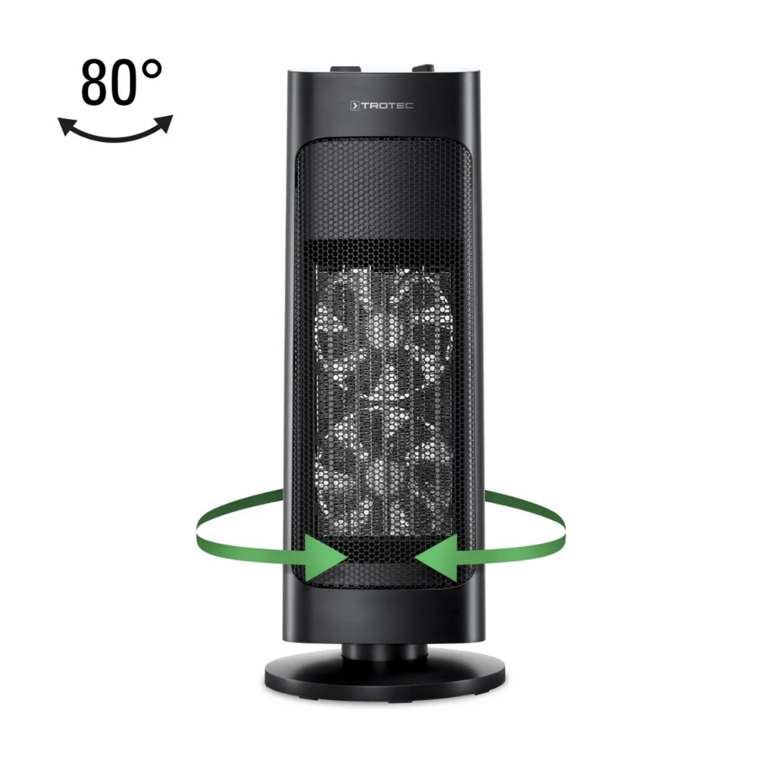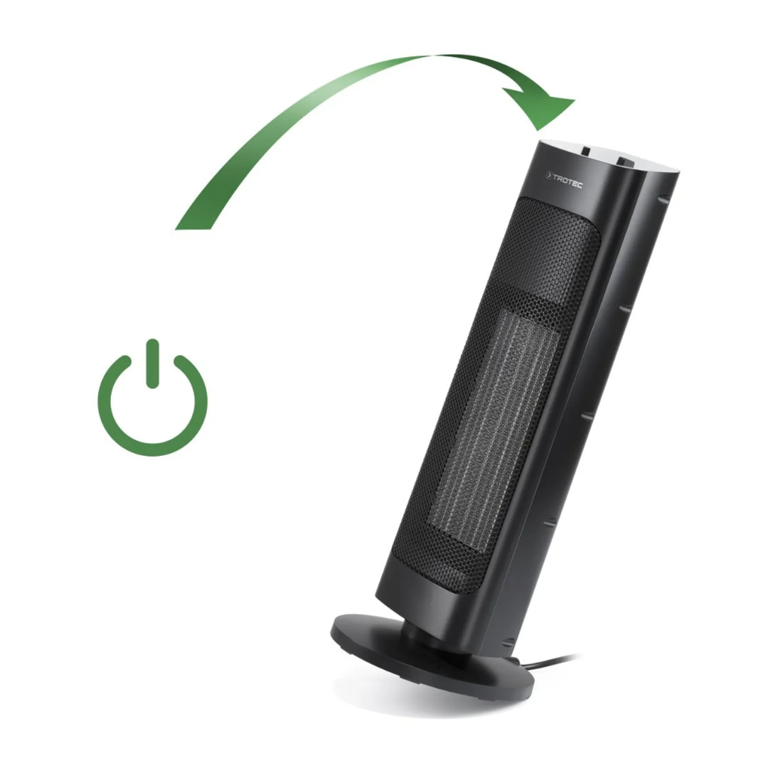 Trotec TFC 20E turi jungiklį su dviem šildymo lygiais (1000 W ir 2000 W) bei nuolat reguliuojamą termostatą, kuris leidžia tiksliai nustatyti norimą temperatūrą. PTC keraminis kaitinimo elementas užtikrina efektyvų ir energiją taupantį šildymą patalpose iki 24 m² arba 60 m³. Siekiant užtikrinti saugumą, šildytuvas turi apsaugą nuo perkaitimo ir automatinį išjungimo jungiklį, kuris aktyvuojasi šildytuvui nukritus. Indikatoriaus lemputė tarp dviejų sukamųjų jungiklių informuoja, ar įrenginys prijungtas prie elektros tinklo. Be to, galima įjungti 80° svyravimą, kuris užtikrina tolygų šilto oro paskirstymą visoje patalpoje.