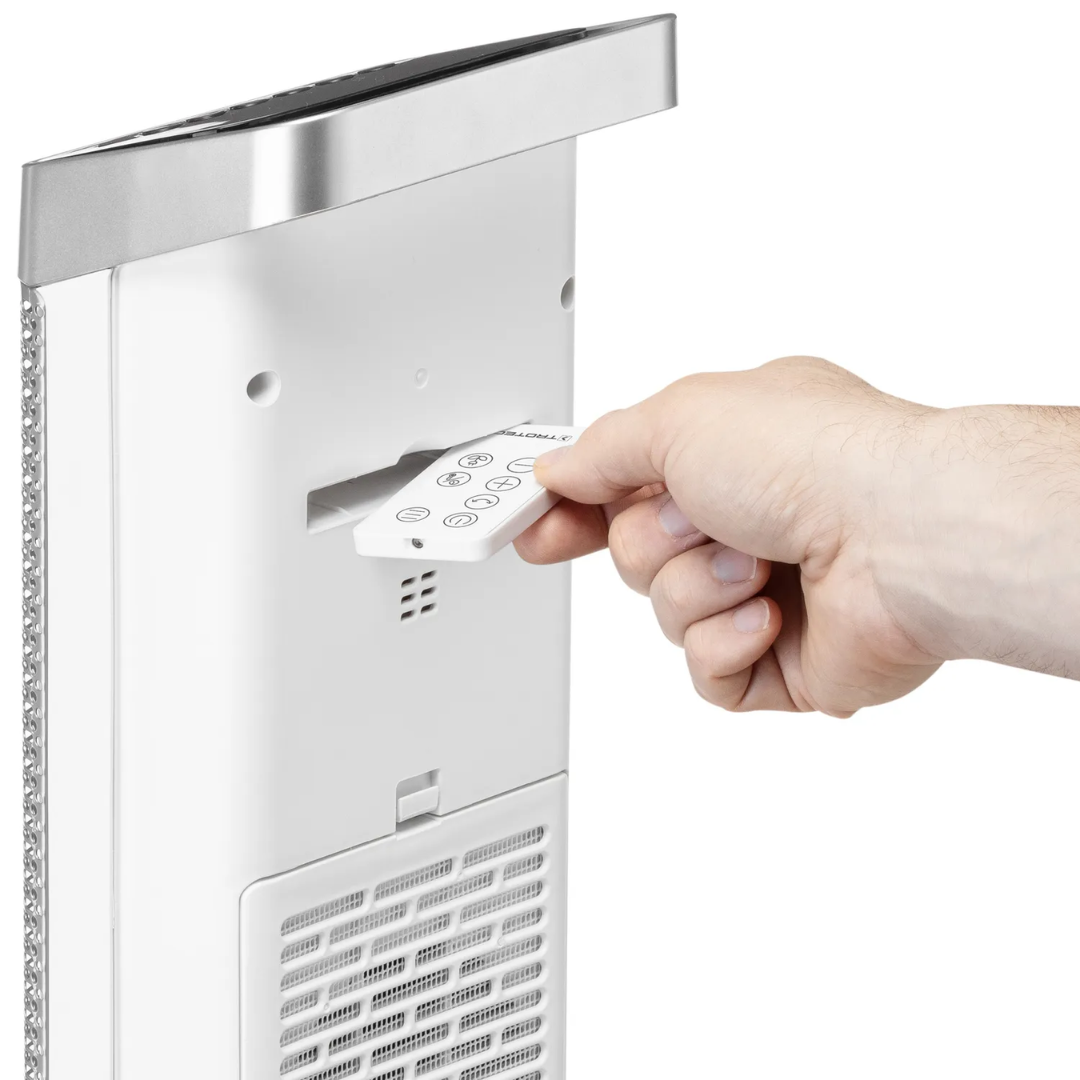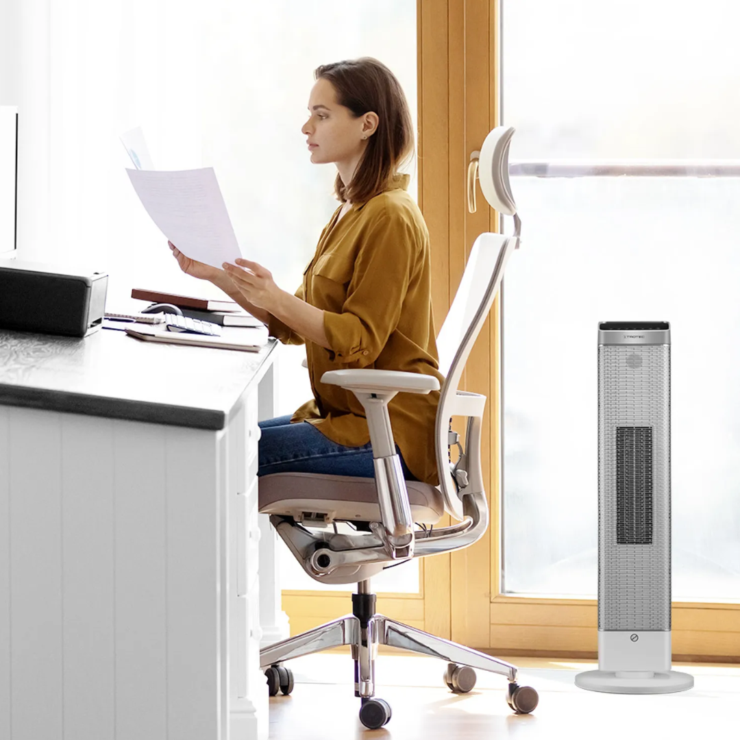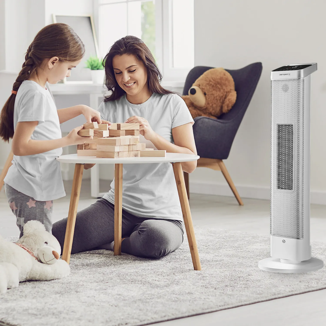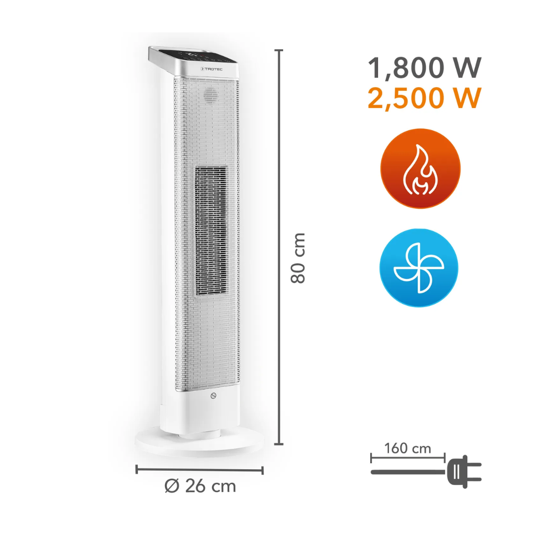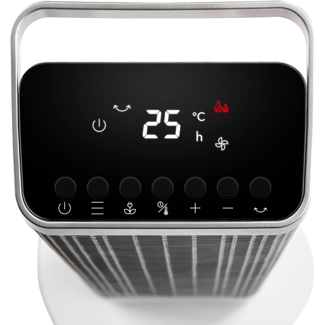 Keraminis šildytuvas Trotec TFC 25 E yra puikus pasirinkimas tiems, kurie ieško efektyvaus ir stilingo šildymo sprendimo. Šis elektrinis šildytuvas su PTC keraminiu kaitinimo elementu ir nuotolinio valdymo pulteliu sujungia išskirtinį dizainą ir puikų šildymo efektyvumą. Įrenginys turi integruotą nešiojimo rankeną, juodą LED valdymo skydelį ir tvirtą stovą, todėl puikiai tinka šiuolaikinei namų ar biuro aplinkai. Šiltomis dienomis šildytuvo ventiliatorius gali būti naudojamas kaip vėsinimo įrenginys, kai šildymo funkcija išjungta, todėl jis yra universalus pasirinkimas visus metus.