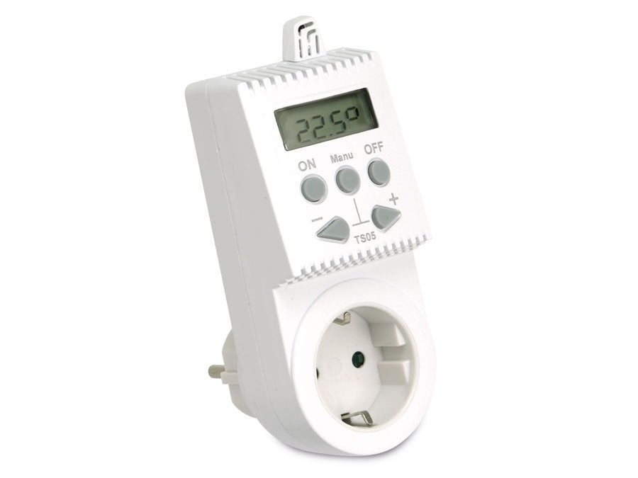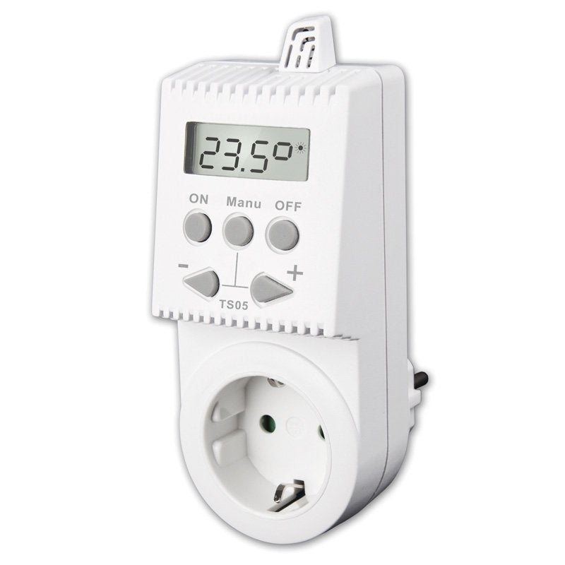 - Kištukinis neprogramuojamas termostatas (termoreguliatorius) TS05 yra paprastas ir patogus sprendimas elektrinių šildymo sistemų valdymui, tokių kaip infraraudonųjų spindulių šildytuvai, tiesioginio šildymo prietaisai ar rankšluosčių džiovyklės, tiek jūsų namuose, tiek biure.