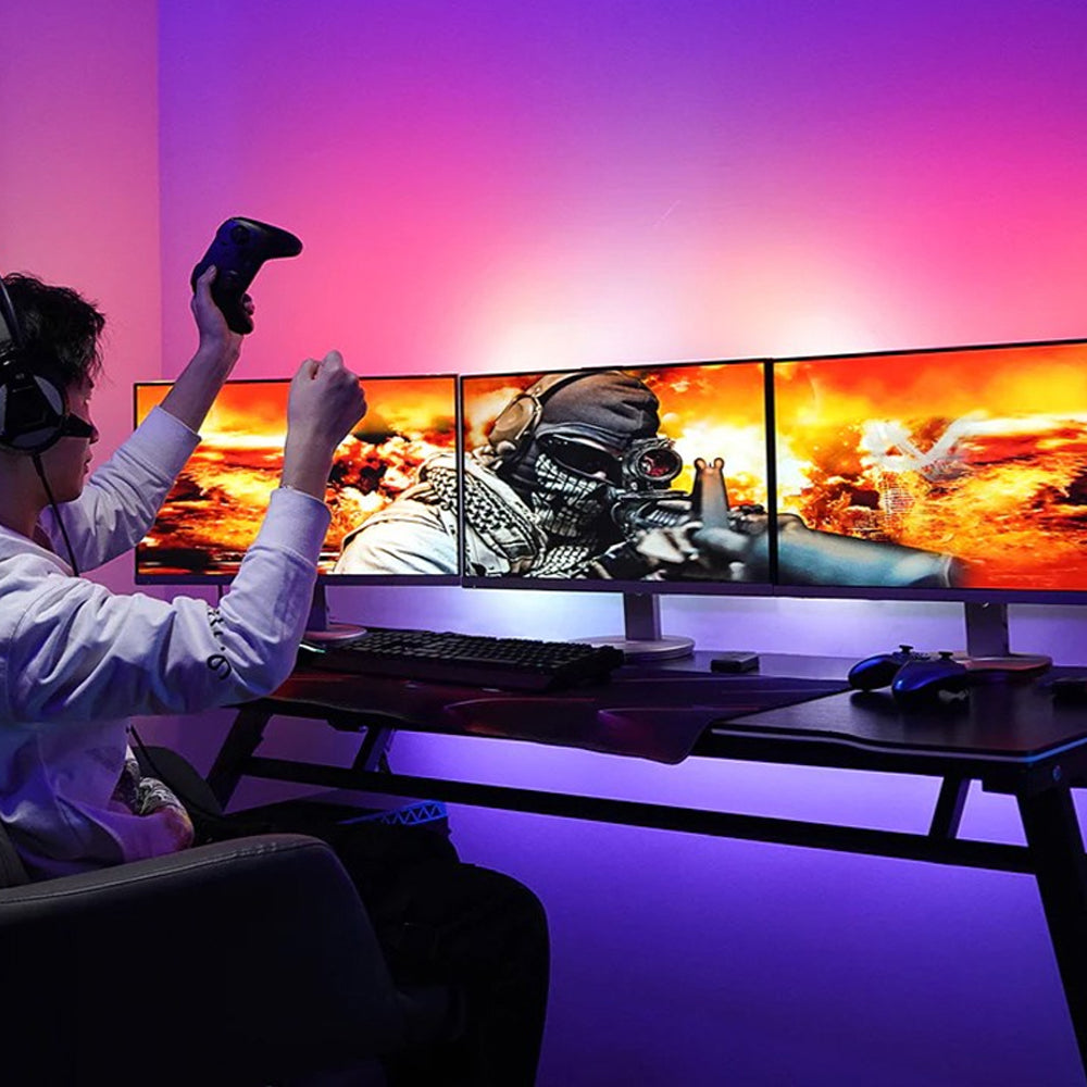 Sukurkite jaukią atmosferą su pažangia ekrano apšvietimo sistema Greentek AMBIT. Šis aukštos kokybės foninis kompiuterio ekrano apšvietimas ne tik suteiks jūsų darbo ar laisvalaikio erdvei stilingą dizainą, bet ir pagerins vaizdo patirtį. Tiesiog priklijuokite šviesos juostą prie monitoriaus galo ir prijunkite prie kompiuterio USB laidu. Atsisiųskite programą „AMBIT“ į savo išmanųjį kompiuterį, kurioje galėsite valdyti norimą spalvą, apšvietimo intensyvumą bei keisti temas, tokias kaip filmai, muzika, žaidimai, statinė ar dinaminė. Šis foninis ekrano apšvietimas suderinamas su Windows 10 ar naujesne programine įranga.