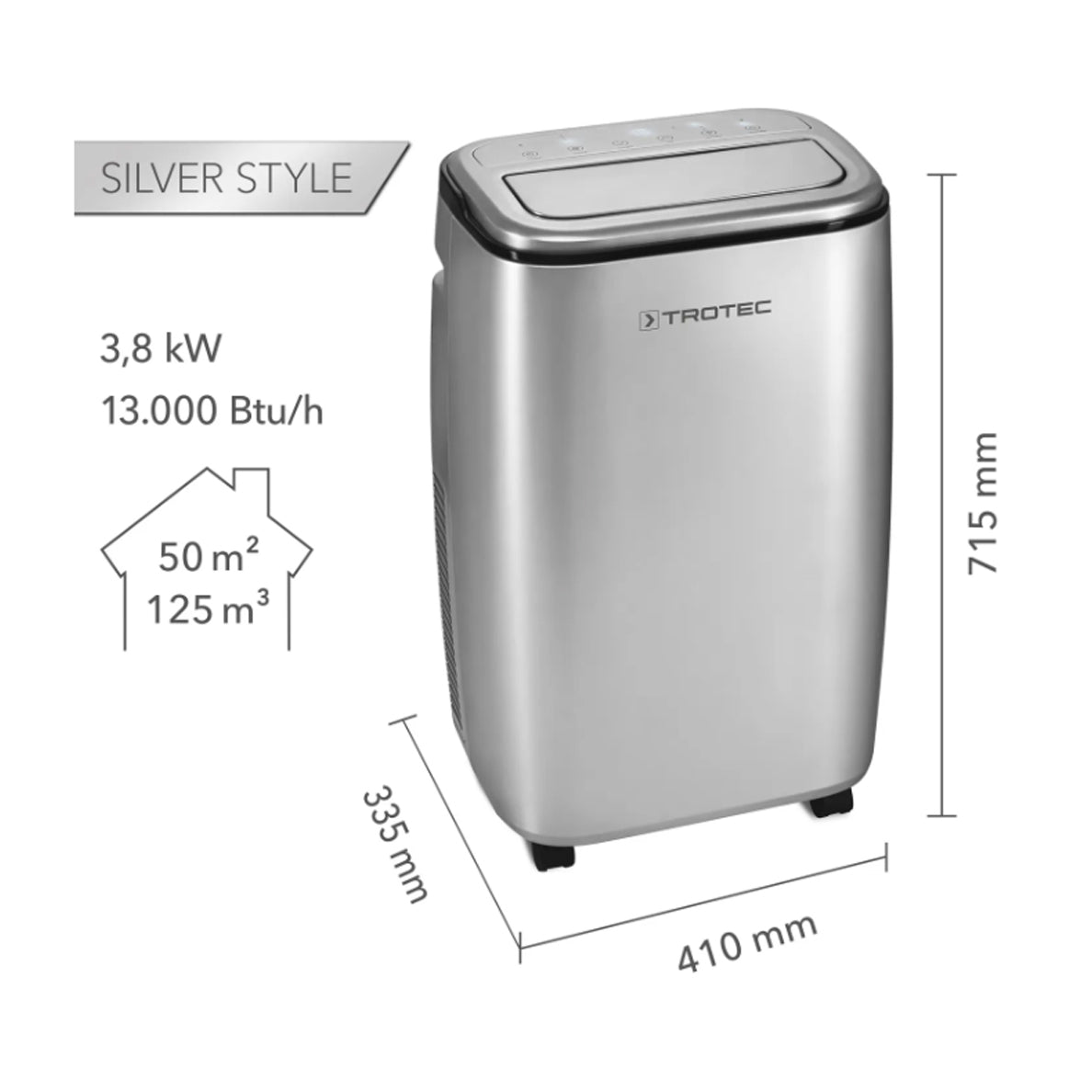 Mobilus oro kondicionierius Trotec PAC 3810 S yra puikus pasirinkimas tiems, kurie nori užtikrinti malonų kambario klimatą visus metus. Šis „3 in 1“ įrenginys efektyviai vėsina, vėdina ir sausina orą, todėl jis idealiai tinka naudoti namuose, biuruose, verslo patalpose, sodo nameliuose, viešbučiuose, restoranuose, dirbtuvėse, galerijose ar gydytojų kabinetuose, kurių plotas siekia iki 50 m² arba 125 m³.
