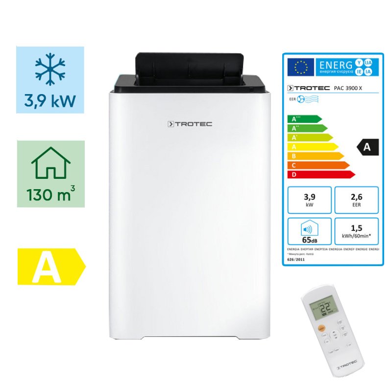 Mobilus oro kondicionierius Trotec PAC 3900 X yra universalus prietaisas, kuris užtikrina optimalų kambario klimatą, atlikdamas tris pagrindines funkcijas: vėsinimą, vėdinimą ir sausinimą. Šis kondicionierius, turintis 3,9 kW galią, yra ypač tinkamas didelėms patalpoms iki 52 m² arba 130 m³. Jo 3 pakopų vėdinimo funkcija ir reguliuojamos oro žaliuzės leidžia tolygiai paskirstyti šaltą orą patalpoje. Prietaisas pasižymi efektyviu energijos taupymu dėl integruotos automatinio išjungimo funkcijos, kuri, pasiekus norimą patalpos temperatūrą, automatiškai išjungia vėsinimo funkciją.