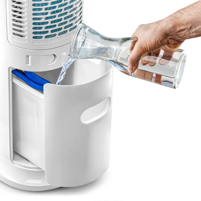 Vėsintuvo pripildymo lygio indikatorius leidžia lengvai stebėti vandens kiekį bake, o automatinio išsijungimo funkcija su įspėjimu ekrane užtikrina saugumą, kai vandens bakas ištuštėja. Vėsinimo efektyvumą galima padidinti naudojant du pridedamus ledo paketus arba ledo kubelius. Automatinė svyravimo funkcija, kuri judina vidines oro sklendes vertikaliai 60°, užtikrina tolygų oro srovės paskirstymą visoje patalpoje.