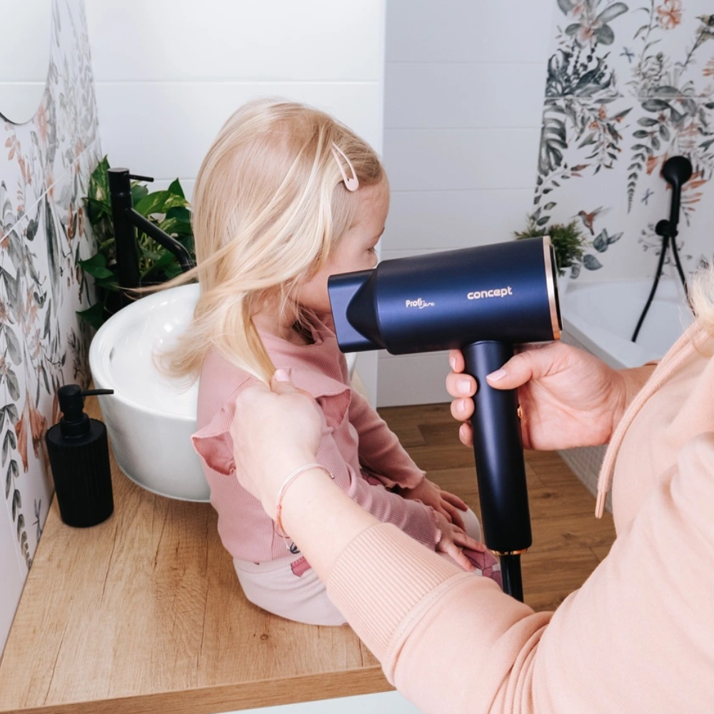 Integruota automatinė jonizacijos funkcija mažina plaukų elektrinimąsi ir nepageidaujamą šiaušimąsi. Neigiami jonai padeda plaukams tapti švelniais, lygiais ir lengviau formuojamais. Specialus Baby Mode režimas su optimaliu 39 °C oro srautu idealiai tinka vaikų plaukams ir jautriai odai, taip pat augintinių kailiui džiovinti be perkaitimo ar odos dirginimo.