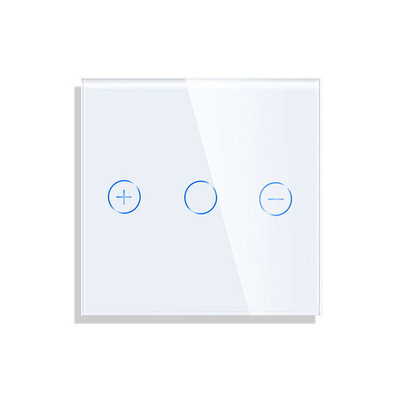 - Baltos spalvos stiklinis sensorinis jungiklio dimerio dangtelis FSSDMD4W, pagamintas iš grūdinto stiklo, yra atsparus vandeniui ir ugniai.