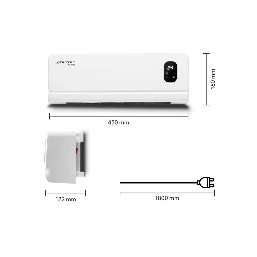 - Efektyvus sieninis šildymas namuose: Trotec TFC-W 27 E yra kompaktiškas sieninis elektrinis šildytuvas, skirtas naudoti uždarose, gerai apšiltintose patalpose iki 24 m² arba 60 m³. Šildytuvas tvirtinamas prie sienos ir maitinamas iš įprasto elektros lizdo. Įrenginyje integruotas keraminis PTC kaitinimo elementas, o ventiliatorius tolygiai paskirsto šilumą visoje patalpoje.