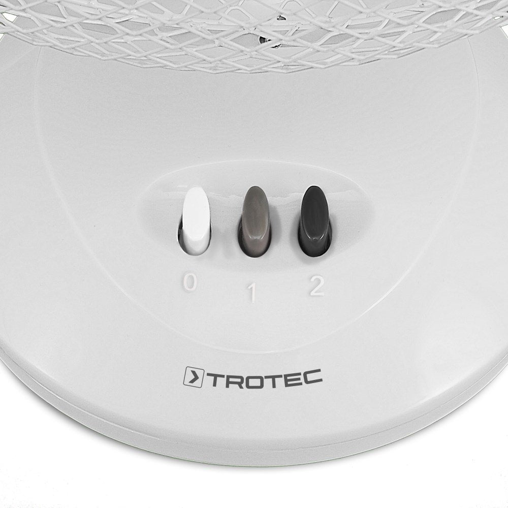 Ventiliatorius turi 2 vėjo greičius, automatinį horizontalų pasisukimą 90 laipsnių kampu ir reguliuojamą vertikalų palenkimą iki 30 laipsnių. Dėl pažangios technologijos ir puikiai sukalibruotos sparnuotės, TROTEC TVE 9 veikia labai tyliai net ir lėčiausiu greičiu. Stabilus stovas ir nuimama metalinė sparnuotės apsauga leidžia prietaisą lengvai prižiūrėti, o perkaitimo apsauga užtikrina automatinį išsijungimą.