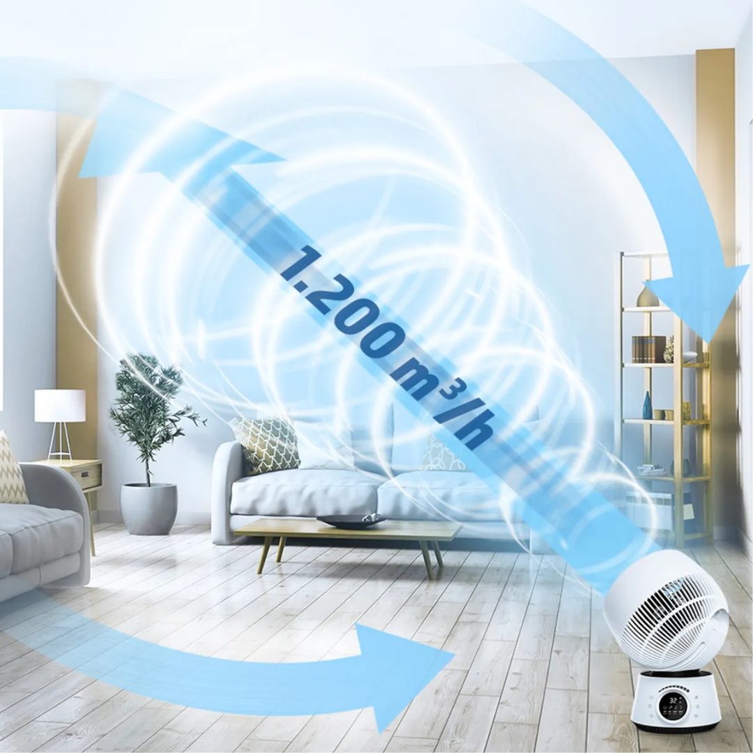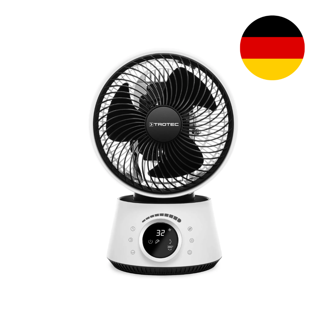 Kompaktiško dydžio ventiliatorius Trotec TVE 100 gali būti pastatytas beveik ant bet kokio stalo arba laisvai pastatytas kambaryje, sukuriant galingą vėjo gūsį iki 1200 m³/h oro srautu. Jis taip pat padidina šildymo ar oro kondicionavimo sistemos efektyvumą dėl stiprios oro cirkuliacijos, tolygiai paskirstydamas orą patalpoje. Tai užtikrina malonią gaivą vasarą ir geresnį šilumos paskirstymą žiemą.