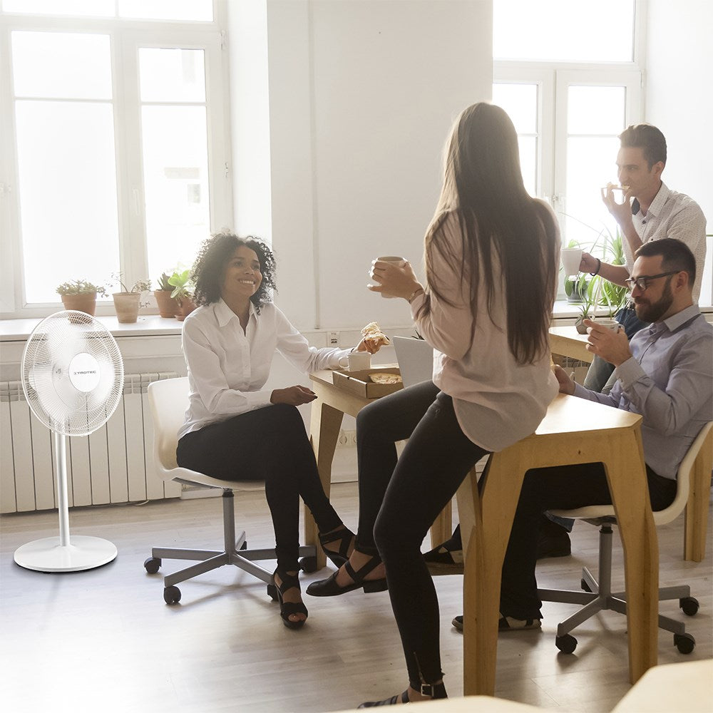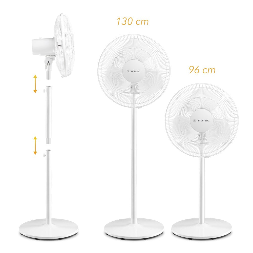Ventiliatorius turi sukamąjį jungiklį su trimis oro greičio lygiais. Norint tolygiai paskirstyti oro srautą visoje patalpoje, galima įjungti integruotą svyravimą 80 laipsnių kampu. Ventiliatoriaus galvutė automatiškai sukasi iš kairės į dešinę, užtikrindama nuolatinį vėsinimą – kaip natūralus gaivus vėjas. Be to, ventiliatoriaus galvutę galima pakreipti iki 30 laipsnių aukštyn arba žemyn, leidžiant nukreipti oro srautą jums patogiausiu kampu. Trotec TVE 23 S veikia nepastebimai tyliai net ir aukščiausiu lygiu.