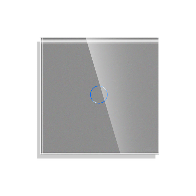 - Pilkos spalvos stiklinis sensorinis vienpolis jungiklio dangtelis FSSDM1G pagamintas iš grūdinto stiklo, atsparus vandeniui ir ugniai.